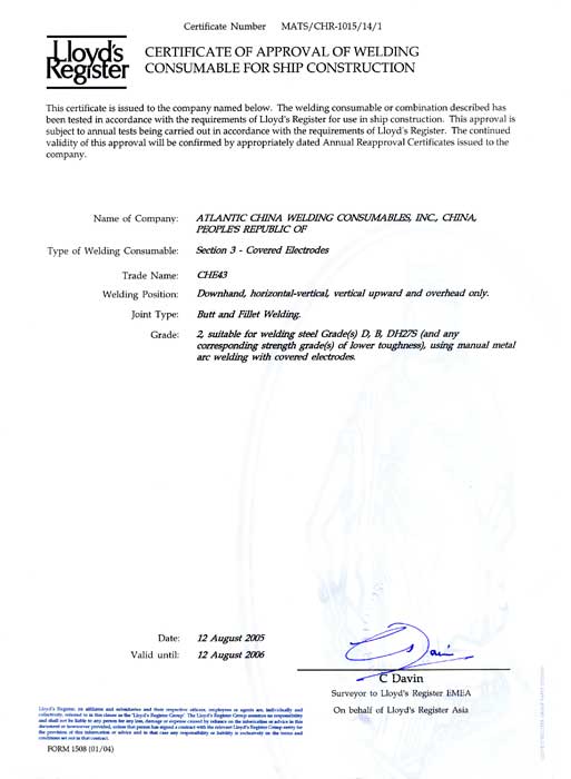 Lloyd Register 證書-CHE43