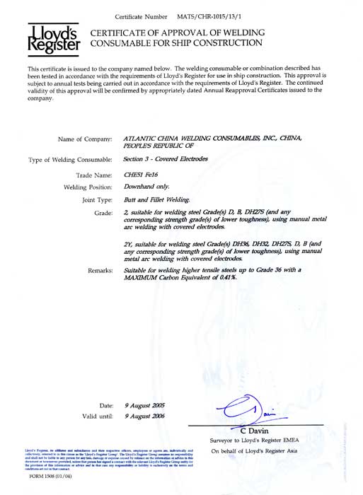 Lloyd Register 證書-CHE51Fe16